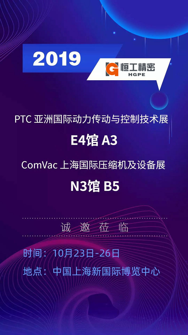 恒工精密誠(chéng)邀蒞臨PTC亞洲動(dòng)力傳動(dòng)展和ComVac上海國(guó)際壓縮機(jī)展