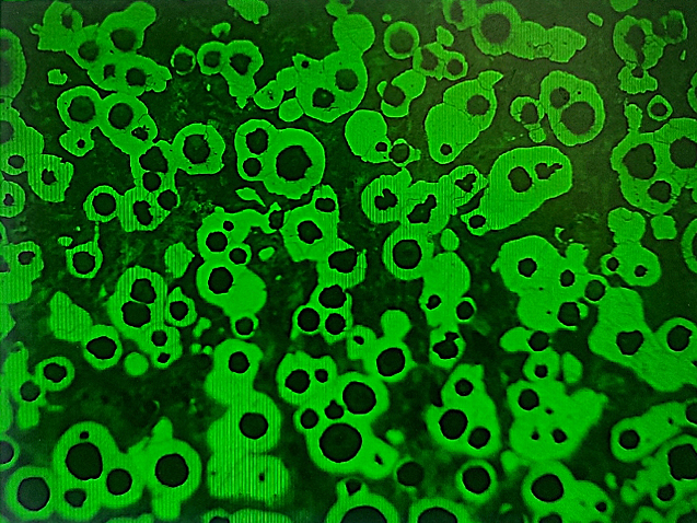 參考GBT 9441-2009判定球化率及石墨形貌,基體以珠光體為主,另有鐵素體;邊緣石墨球數(shù)量較多,珠光體比例較低,滲碳體比例小于等于3%,且彌散分布;